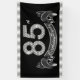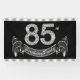 Banderín de cumpleaños número 85 con hermosos números de diamante plateados y banderín plateado y negro sobre un fondo negro y plateado. Puedes cambiar el color del fondo, cambiar el tamaño del banderín y agregar texto para personalizar este hermoso banderín de cumpleaños número 85. ¡Este es un diseño impreso sin diamantes reales, plata, brillo, etc.!