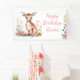 Pancarta de cumpleaños personalizada para el chica de la temática de los dulces venados con flores de gala y rosa.
