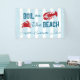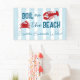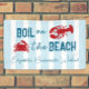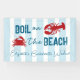 ¡Hervir en la playa! Fin de semana de despedida de soltera con hervido de mariscos con cangrejo y langosta contra un fondo a rayas azules costeras