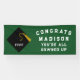 Pancarta de fiesta de graduación verde personalizada para graduados de clase superior. Editar texto para agregar el año y el nombre del gráfico.