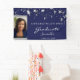 Para una fiesta de graduación de 2023. Un fondo azul marino de moda con estrellas cayendo, goteando. Personaliza y agrega tu propia foto del graduado. Texto; ¡Felicitaciones! El texto: Graduado, y el nombre está escrito con una escritura de estilo con letras a mano moderna.