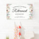 Este banner de felicitación para la fiesta de jubilación muestra un borde floral de acuarela elegante que adorna cada lado. Con tonos pastel suaves de durazno y púrpura, ofrece un encanto delicado y femenino.