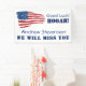 ¡HOOAH! ¡Buena suerte! ¡Te Extrañaremos! Añada el toque final a su fiesta que se va con estos carteles militares de la bandera estadounidense y suministros de fiesta. Diseño de la bandera estadounidense en azul blanco rojo moderno. Este cartel de fiesta patriótico de la bandera estadounidense es perfecto para que un soldado se vaya fiesta, los despliegues militares despegen, la celebración de la casa de bienvenida militar, la graduación militar y los retiros militares. Personalice esta invitación a la bandera estadounidense con el nombre de sus soldados. Vea nuestra colección de regalos militares de retiro, regalos de graduación militar, favores partidarios y suministros. DERECHOS RESERVADOS © 2021 Judy Burrows, Black Dog Art - Todos los derechos reservados. Bandera estadounidense de EEUU Ejército se va sin pancarta Fiesta