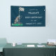 Un ilustracion acuarela de una bandera de golf a cuadros, una bolsa de golf sobre ruedas y una bola de golf en un fondo azul oscuro se muestra en este cartel de la Fiesta de los 50 Años. Personalizar el cartel con el nombre de tu amigo, marido, compañero de trabajo, pareja, etc. y la fecha de la fiesta de cumpleaños para que tus invitados sepan a dónde ir.