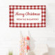 Bienvenido a su fiesta Navidad con un banner personalizado con un borde rústico rojo y blanco para la verificación de búfalos con su texto en un rectángulo blanco en el centro. Se lee "Feliz Navidad" en un oscuro alfabeto rojo con tu nombre debajo en un moderno tipo de letra sans serif. Perfecto para una fiesta de vacaciones. Personalizar con tu texto en la barra lateral. Para ver el diseño Patrón de Gingham rojo y blanco en la coordinación de suministros de fiesta, haga clic en el enlace de la colección "Artes Rocklawn". Imagen creada digitalmente. Copyright ©Claire E. Skinner. Todos Los Derechos Reservados.