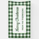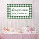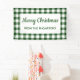 Bienvenido a su fiesta Navidad con una pancarta personalizado con un borde rústico verde y blanco de búfalo con su texto en un rectángulo blanco en el centro. Se lee "Feliz Navidad" en una fuente de escritura verde oscura con tu nombre debajo de ella en un moderno tipo de letra sans serif. Perfecto para una fiesta de vacaciones. Personalizar con tu texto en la barra lateral. Para ver el diseño Patrón de Gingham Verde y Blanco sobre la coordinación de los suministros de los fiestas, haga clic en el enlace de la colección "Artes Rocklawn". Imagen creada digitalmente. Copyright ©Claire E. Skinner. Todos Los Derechos Reservados.