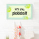 ¡Juguemos a la pelota! Celebre su jugador de pickleball o aficionado con este divertido y vibrante banner fiesta con un divertido tipo de letra retro y bolas de pickleball verdes y azules. Todo el texto es personalizable. Parte de una colección de Parcel Studios.