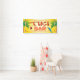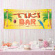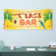 Cartel del Tiki Bar para una fiesta temática en la playa o un evento luau. Diseño colorido con marco de bambú, palmeras, fuentes divertidas, loro y bebida tropical. Elija una pancarta de calidad interior o exterior.