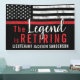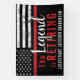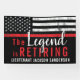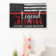 Este diseño cuenta con una bandera de los bomberos con rayas blancas y negras y una delgada franja de línea roja. El texto de "La leyenda es agotadora" se sienta por encima del nombre del bombero, teniente o jefe que se retira. ¡Celebren con estilo!