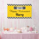 Sorprende a tu Taxista que se retira con este maravilloso cartel de fiesta de taxi estilo Nueva York. Banner amarillo brillante, tiras de tablero de ajedrez en blanco y negro, TAXI fuera de servicio, y tu propio nombre y mensaje. Personalizar.