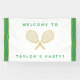 Los huéspedes podrán disfrutar de este banner personalizado con el texto de su elección y racquets y pelotas de oro. El texto es personalizable. Parte de una colección de Parcel Studios. *Nota: El oro de este producto es simulado. No se utilizará ningún Relieve metalizado de oro real en la fabricación de este producto.