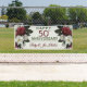 Añada esta pancarta floral, borgoñona y blanca, interior/exterior colgante a sus accesorios para el evento "50º aniversario del Boda". Para personalizar, simplemente inserte su texto en nuestra plantilla sencilla. No olvide ver el conjunto completo de accesorios para este "50º Aniversario Boda". ¡Disfrútalo! (Tenga en cuenta que el número 50 se puede cambiar simplemente seleccionando e introduciendo otro número. (Seleccione "Interior o Exterior")