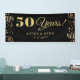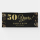 Vestir a su fiesta con esta pancarta personalizada de Fiesta del 50 Aniversario Negro y Oro. Está diseñado con un fondo de personalizable negro moderno y un purpurina de oro falso en los lados delantero derecho e izquierdo. El texto es "50 años" en letras falsas de caligrafía de oro seguido de nombres de pareja y fecha de aniversario. HAGA CLIC EN PERSONALIZAR LA OPCIÓN PLANTILLA Y ESCRIBIR NOMBRES Y FECHA