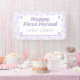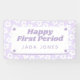 Haga que el primer fiesta de periodo de su hija adolescente sea conmemorable con este cartel de personalizable de JessicaAmber. Este banner de vinilo presenta un adorable patrón de flores de margarita personalizado, en tonos pastel morado y blanco. En un gran tono de letra es el lema 'Feliz primer periodo', que puedes cambiar para agregar el nombre de tu hija. 🩸 Para obtener más suministros de fiesta durante el primer periodo, visite mi tienda Zazzle.com/jessicaamberartist 🩸 Para pedidos de personalizados, envíame un mensaje a Zazzle