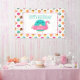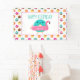 La fiesta en la piscina del cumpleaños del flamenco del buñuelo personalizó la bandera para dentro o al aire libre. El buñuelo helado lindo con la piscina del flamenco floaty alista para una fiesta en la piscina. www.SamAnnDesigns.com