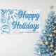 Esta hermosa pancarta para fiestas de invierno presenta preciosos copos de nieve blancos junto a 'Felices Fiestas' escrito en elegante letra cursiva sobre el nombre de su empresa. Personalice esta decoración navideña corporativa preciosa.