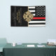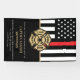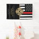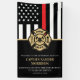 This design features a firemen's flag with black and white stripes, and a thin red line stripe as well. A fireman's badge sits above all of the party details for the retiring firefighter, lieutenant, or chief's retirement party.