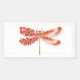 Dibujado artísticamente, dorado, libélula con joyas de color rojo y alas decoradas con rojo, floreciente, cerezo japonés con joyas sobre fondo blanco. Dragonfly de oro.