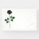 Rosa negro simbólico, dibujado de forma artística, con tallos verdes y hojas sobre fondo blanco. Rosa negro.