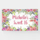 Celebra sus Dulces 16 años con estilo con este banner de cumpleaños personalizado que presenta flores de acuarela rosadas y púrpuras exuberantes. El nombre y la edad de la invitada de honor se muestran en elegante letra cursiva, lo que lo convierte en un fondo perfecto para fotos de fiesta, mesas de postres o entradas. Este banner aporta un look fresco y femenino a cualquier celebración y coordina perfectamente con nuestra línea completa de suministros para fiestas florales, que incluyen invitaciones, letreros, servilletas, platos y tarjetas de agradecimiento a juego.
