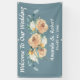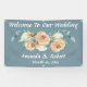 Este elegante cartel de Boda acuático floral de verano está diseñado con un conjunto de flores de verano en tonos crema y taupe, sobre un fondo verde azul. El texto incluye: Bienvenidos a Nuestro Boda, Los nombres de la novia y el Boda en blanco. Para personalizar con sus detalles, simplemente inserte su texto en nuestra plantilla fácil, reemplazando el ejemplo.