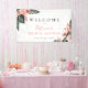 Hojas verdes tropicales modernas y arreglos florales de color rosa coral, pancarta personalizada. Perfecto para Novia o Baby Shower, fiesta de cumpleaños. Las líneas de texto de plantilla le permiten personalizar este cartel para su evento. Diseñado para coincidir con nuestra colección de trópicos modernos.