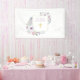 Esta bonita y elegante pancarta del Bautismo presenta un marco de bonitas rosas blandas, violetas y rosas rubias, con hojas verdes y falsos acentos dorados, sobre un fondo blanco limpio para un look a la vez moderno y de inspiración vintage. También hay una falsa cruz dorada.