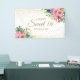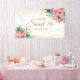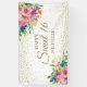 Elegante floral color rosa, amarillo y azul sobre la bandera de la fiesta de 16 años dulce blanco con purpurina dorado. Personalizado con el nombre del invitado de honor. Hermosos colores de primavera y verano.