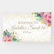 Elegante color rosa, amarillo y azul acuático floral sobre blanco Sweet 16 cumpleaños fiesta de bienvenida con purpurina dorado. Personalizado con el nombre de la invitada de honor y su fecha fiesta. Hermosos colores de primavera y verano.