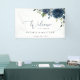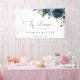 Añada un toque personal a la celebración de su boda con estos artículos fiestas elegantes y memorables. El diseño presenta flores color azul marino y vegetación sobre fondo blanco.