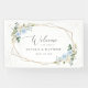 Añada un toque personal a la celebración de su boda con estos artículos fiestas elegantes y memorables. El diseño presenta flores de color azul y blanco, vegetación, confeti dorado y marco dorado sobre fondo blanco.