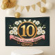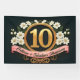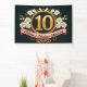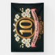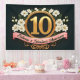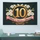 Celebra una década de amor con este elegante banner de aniversario, que presenta un audaz "10" dorado en su corazón, simbolizando tu compromiso duradero. El número está enmarcado por un borde circular brillante, con arreglos exuberantes de delicadas flores blancas y follaje verde que caen en cascada alrededor de él. Una hermosa cinta rosa fluye con gracia debajo, mostrando nombres personalizados. Este banner es el centro de mesa perfecto para tu celebración de aniversario, un tributo atemporal a tu historia de amor.