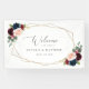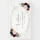Añada un toque personal a la celebración de su boda con estos artículos fiestas elegantes y memorables. El diseño presenta flores color burdeos, marina y color de agua rosa y rubio, vegetación y marco dorado sobre fondo blanco.