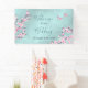 flores de cerezo rosa bonito y dos bonitas mariposas sobre un fondo turquesa y brillante. Con un texto de bienvenida boda y nombres personalizados. El cartel boda bonito con flores de cerezo y mariposas florecientes ayuda a crear un encanto de buena voluntad y a difundir alegría por todos lados.
