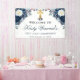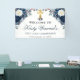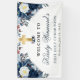 Precioso diseño floral de flores de invierno azules y blancas en acuarela con fondo de patrón de rayas y confeti dorado