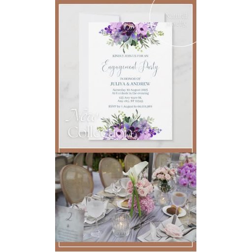 Lona flores moradas y verdes Ducha de novia Bienvenida