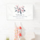 Banner de evento (ducha de bebé, cumpleaños, etc...) con un ilustracion acuarela de bonito de flores rosadas con hojas grises en un solo tallo. Diseño botánico moderno y elegante.