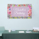 Lona Flores salvajes rosadas púrpura nombre guión cumpl