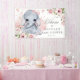 En la pancarta de la ducha para bebés hay un elefante de color agua pintado a mano y adornado con rosas. Personalice con mamá el nombre y la fecha de ducha del bebé o cambie el nombre del bebé sólo para que su futura madre pueda colgar en la habitación del bebé después de la ducha.