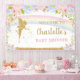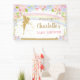 Personalice este hermoso banner de fondo de Hada Floral Arcoíris con sus datos de manera fácil y rápida, simplemente presione el botón personalizar para reorganizar y dar formato al estilo y ubicación del texto. ¡Hay artículos coincidentes disponibles! Ideal para fiesta de bebé, cumpleaños, bautizo, presentación de bebé y más ocasiones.