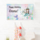 Celebra un cumpleaños mágico con esta hermosa sirena y pancarta de unicornio. Hay una sirena sentada en un unicornio arco iris y otra cola de sirena en la parte inferior. Puedes cambiar este mensaje para decir lo que quieras.