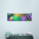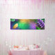 Fondo de mardi gris azul textural con manchas de color violeta, amarillo y verde, adornadas con plumas esponjosas y cuentas brillantes. Fiesta de Mardi gras.