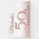 Este hermoso y elegante diseño tipográfico de 50 y fabuloso es perfecto para una mujer en tu vida que está cumpliendo cincuenta años. Con un elegante fondo de brillo rosa dorado y el número 50, así como la palabra fabuloso en color rosa oscuro, este es el diseño perfecto para celebrar una fiesta de cumpleaños número cincuenta. Tenga en cuenta que el producto está hecho para parecer brillo, no hay brillo real en el producto.
