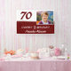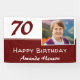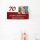 Fondo para fotos de cumpleaños 70 con pancarta roja. Este fondo moderno para cumpleaños de 70 años está en colores rojo oscuro y blanco. Agrega tu foto, personaliza con tu nombre y cualquier texto en la pancarta.