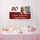 Fondo para fotos de cumpleaños 80 con pancarta roja. Este fondo moderno para cumpleaños de 80 años está en colores rojo oscuro y blanco. Agrega tu foto, personaliza con tu nombre y cualquier texto en la pancarta.