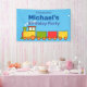 Colorido tren de juguete personalizado en un cartel azul. Plantillas para agregar su nombre.