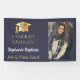 Celebra a tu graduado favorito con una pancarta de foto azul con un gorro de graduación en tono dorado. Simplemente agrega el año de graduación de tu graduado, nombre y escuela o universidad, y foto, y agrega al carrito y listo. Diseño original de Holiday Hearts Designs (derechos reservados).