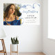 Gradúate con estilo con nuestros banners de graduación chic y trendy. Estos no son solo cualquier banner - son una mezcla elegante de estilo y sofisticación, con un diseño de acuarela de lazo azul sofisticado y hasta tu foto favorita. Eleva el nivel de tu celebración y haz que tu día de graduación sea aún más memorable.