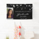 Para una fiesta de graduación de 2025. Un fondo negro de moda con estrellas cayendo, goteando. Personaliza y agrega tu propia foto del graduado. Texto; ¡Felicitaciones! El texto: Graduado, y el nombre está escrito con una escritura de estilo con letras a mano moderna.