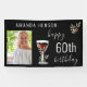 Banner de Foto de Acuarela de Copa de Vino Tinto y Rosa Cumpleaños 60. El diseño tiene una copa de vino tinto de acuarela, rosas y ramitas. El texto es totalmente personalizable: personalízalo con tu foto, nombre y edad. Ideal como telón de fondo para la fiesta de cumpleaños de una mujer o un hombre.